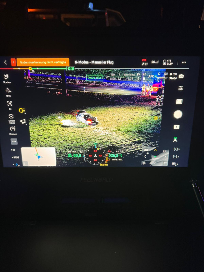Nachforderung der Drohneneinheit durch die Leitstelle nach Verkehrsunfall und der damit verbundenen Personensuche.