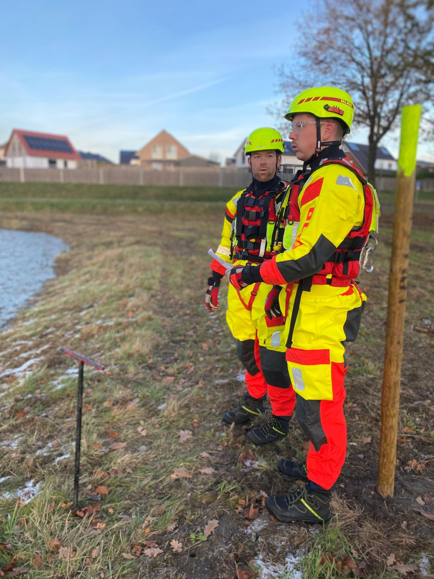 Am Samstag den 22.11. waren wir auf Anforderung des Ordnungsamtes Horneburg im Einsatz am Regenrückhaltebecken im Blumental. Der Abfluss war verstopft, sodass das Becken nach und nach vollgelaufen ist.