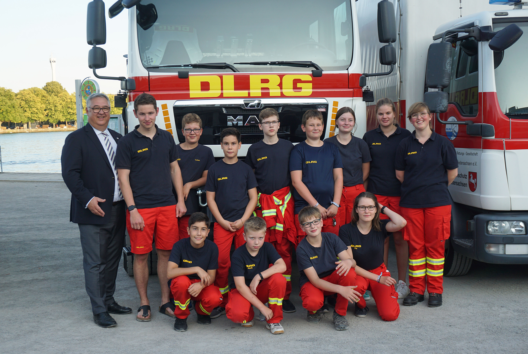 Anlässlich seines Sommerempfangs am vergangenen Donnerstag hatte der DLRG-Landesverband Niedersachsen einiges aufgefahren. Entlang der Promenade des Maschsees konnten Passanten etliche Fahrzeuge und Geräte des beteiligten DLRG-Bezirks Hannover-Stadt bestaunen. Im Inneren des Courtyard-Hotels zeigten zwölf Kinder und Jugendliche vom Jugend-Einsatz-Team - kurz „JET“, was sie schon alles gelernt haben und motivierten die Gäste, sich selbst im Knotenbinden oder der Herz-Lungen-Wiederbelebung zu versuchen.